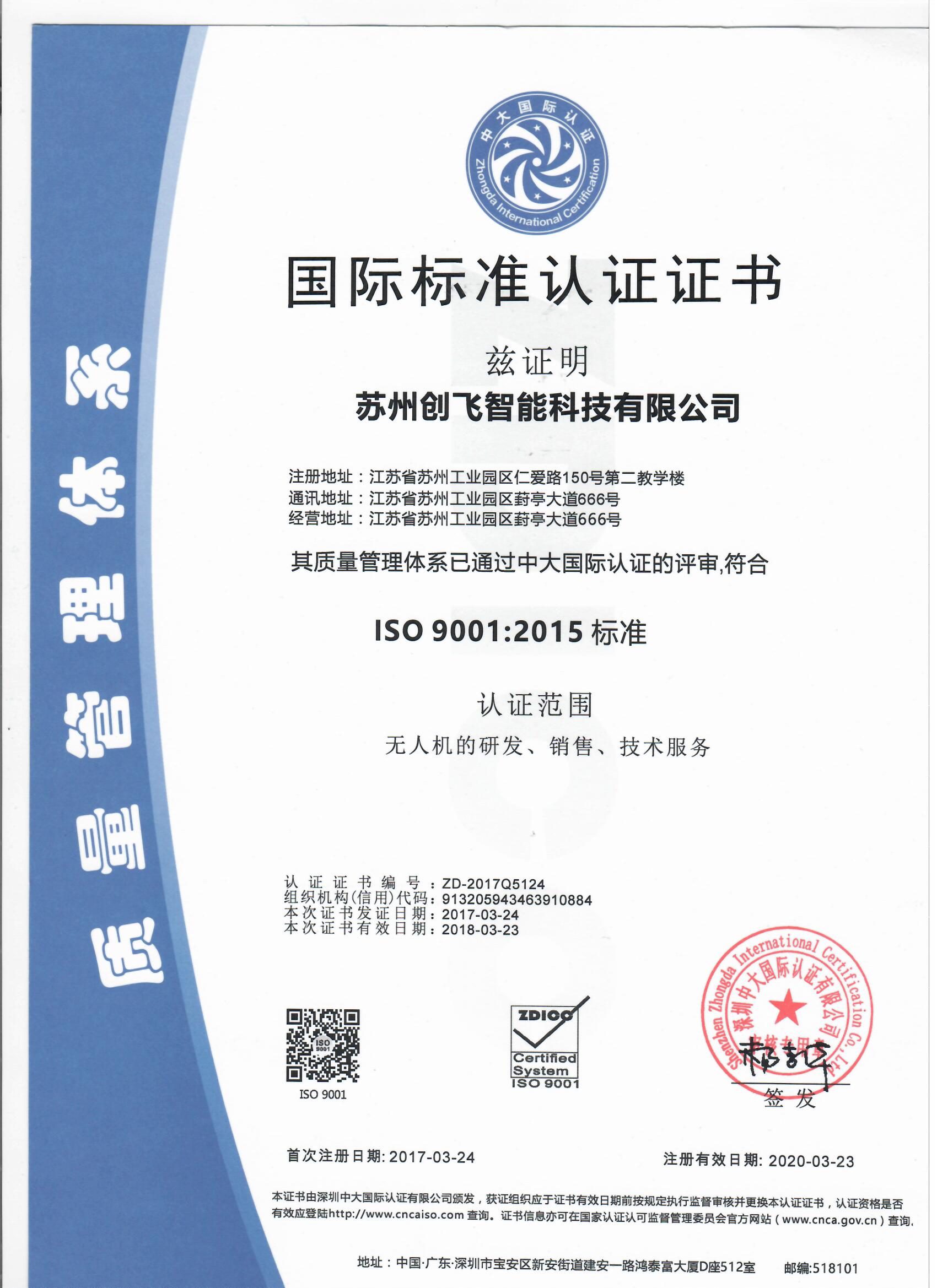 國際標(biāo)準(zhǔn)認(rèn)證證書-創(chuàng)飛
