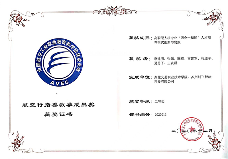 全國航空教育指導(dǎo)委員會(huì)教學(xué)成果二等獎(jiǎng)