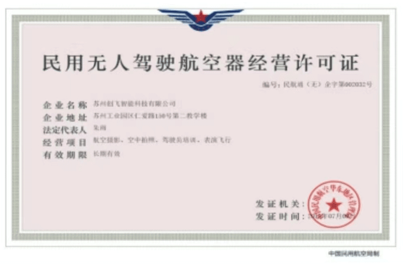 民用無人駕駛航空器經(jīng)營許可證